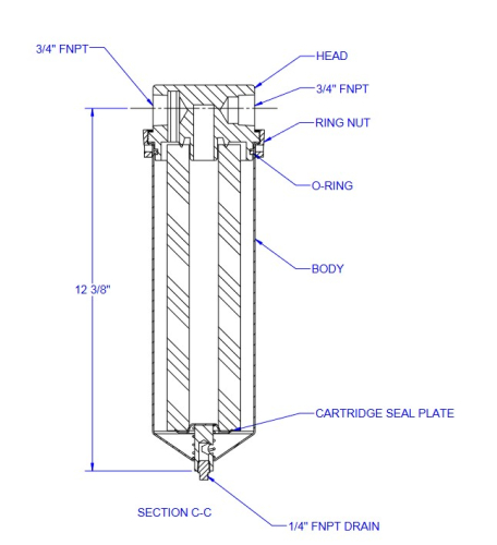 - QFP1X10-3/4 - Described as 316SS, 10", SINGLE CARTRIDGE FILTER HOUSING, 3/4" NPT, DOE CARTRIDGE, 5 GPM, 300 PSI, 200°F.