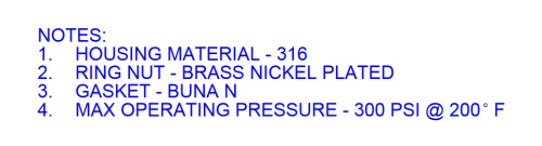 • Housings rated at 150 psi, 250°F
