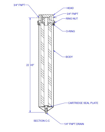 - QFP1X20-3/4 - Described as 316SS 20" Single Cartridge Filter Housing 3/4" NPT, DOE Cartridge, 10 GPM, 300 PSI, 200°F