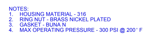 • Housings rated at 150 psi, 250°F