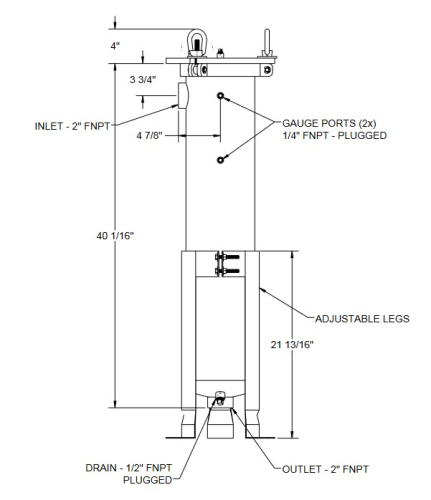 - QFPBH2-304 - Described as Bag Housing SB #2 304 SS 2" FNPT, 120 GPM, 150 PSI, 300°F