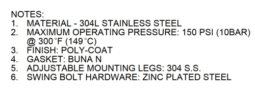 • Housings rated at 150 psi, 300°F